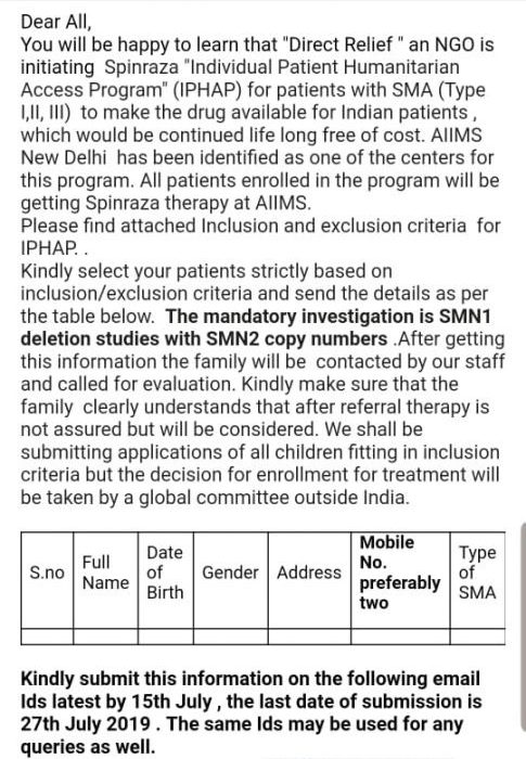 SPINRAZA “Individual Patient Humanitarian Access Program” (SIPHAP)